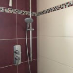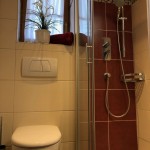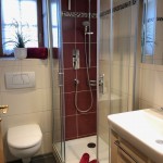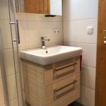 - modernes, neues Bad mit Glasdusche, Deckenbrause, Waschtisch, WC, Fön und Handtuchwärmer